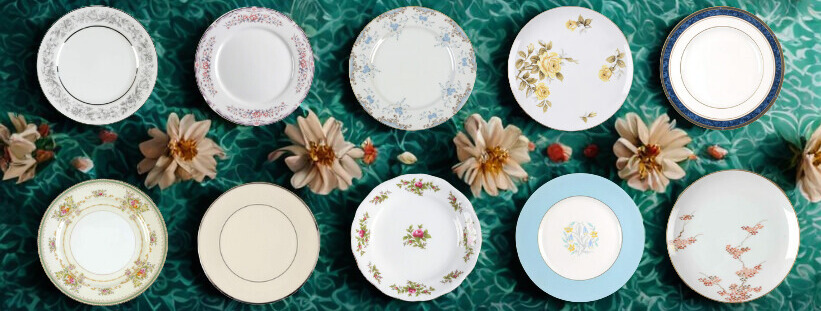 Over 100 vintage china designs available. Mix-and-match patterns to create the perfect table setting for your event.